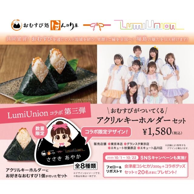 おむすび処 ほんのり屋は、スタープラネットに所属するアイドルグループ「LumiUnion」とのコラボキャンペーン第三弾を実施いたします。