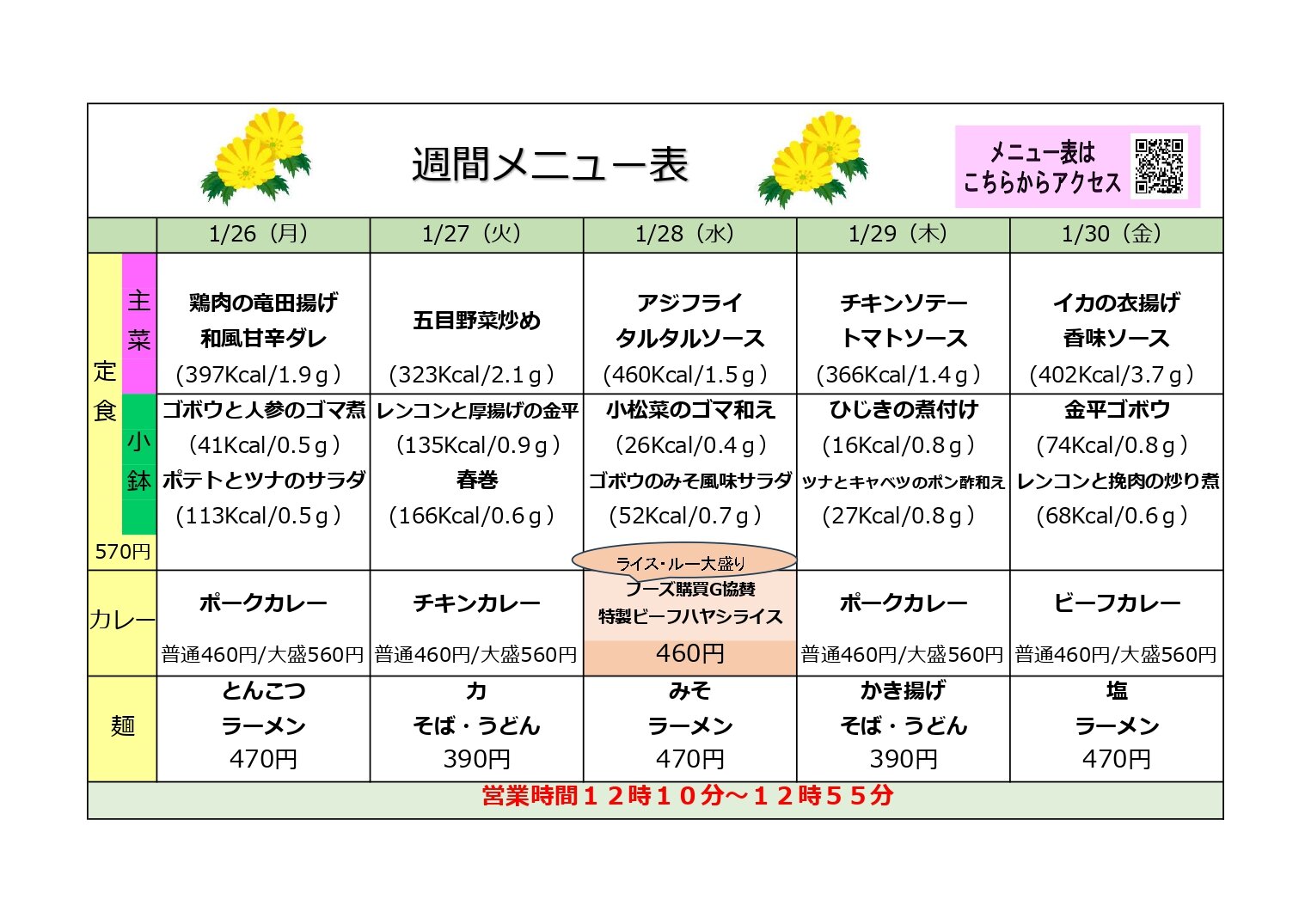 営業時間12:10~12:55 ※一般の方のご利用はできません。