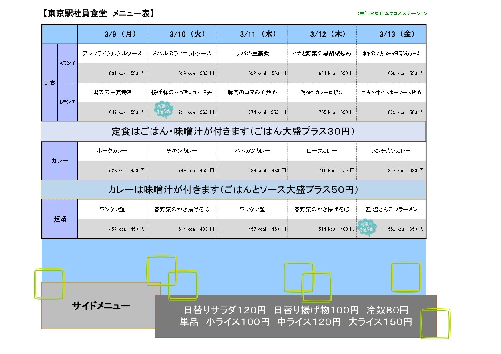 東京駅社員食堂~今週の献立表~