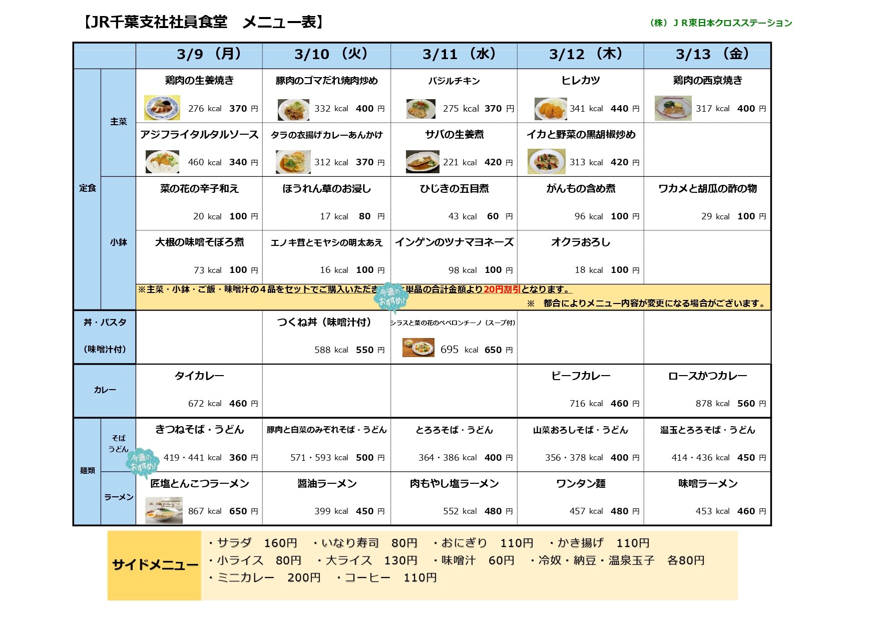 JR千葉支社社員食堂~今週の献立~