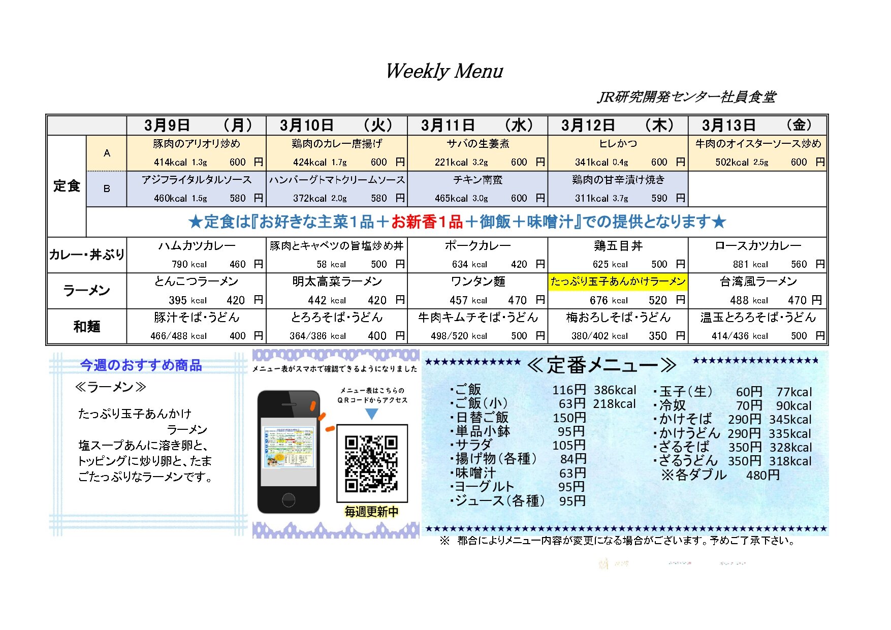 JR研究開発センター社員食堂~今週の献立~