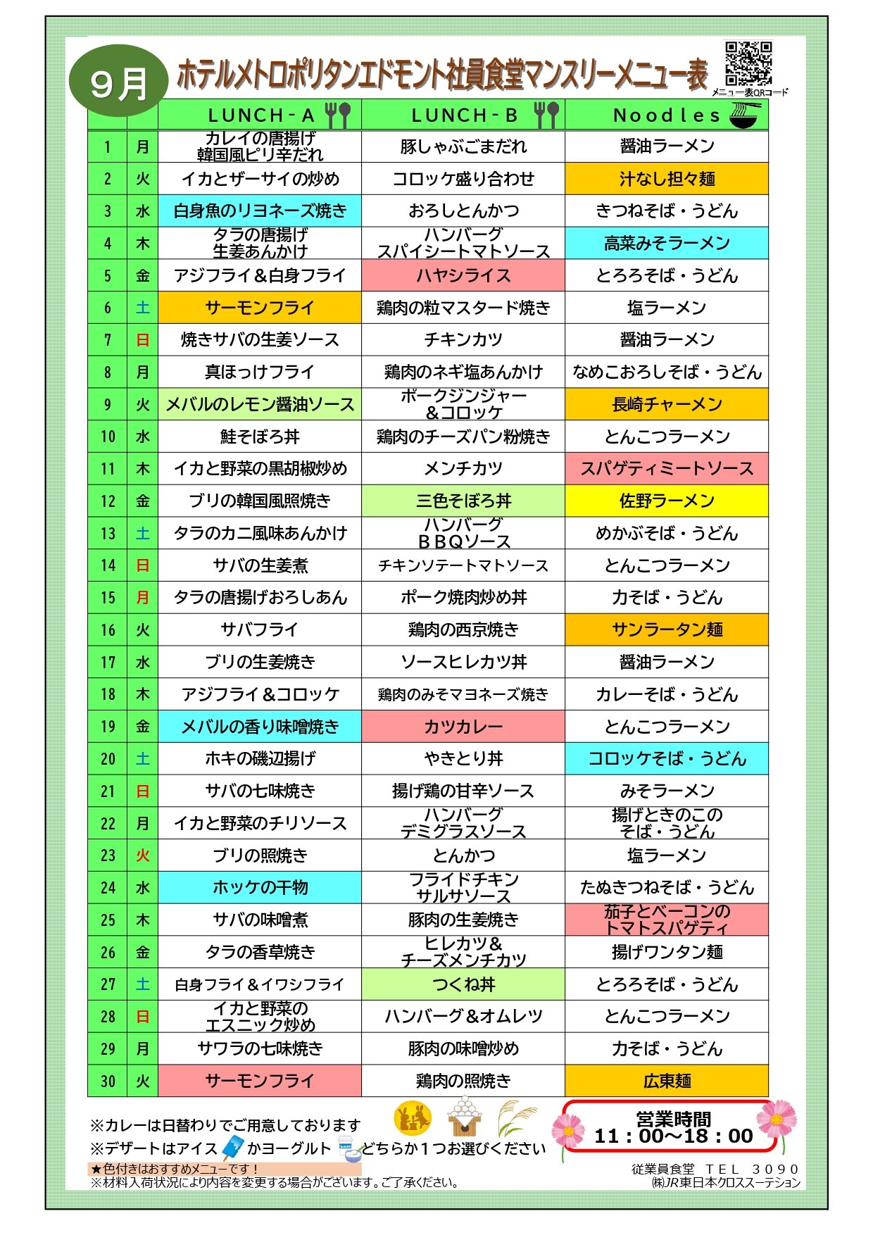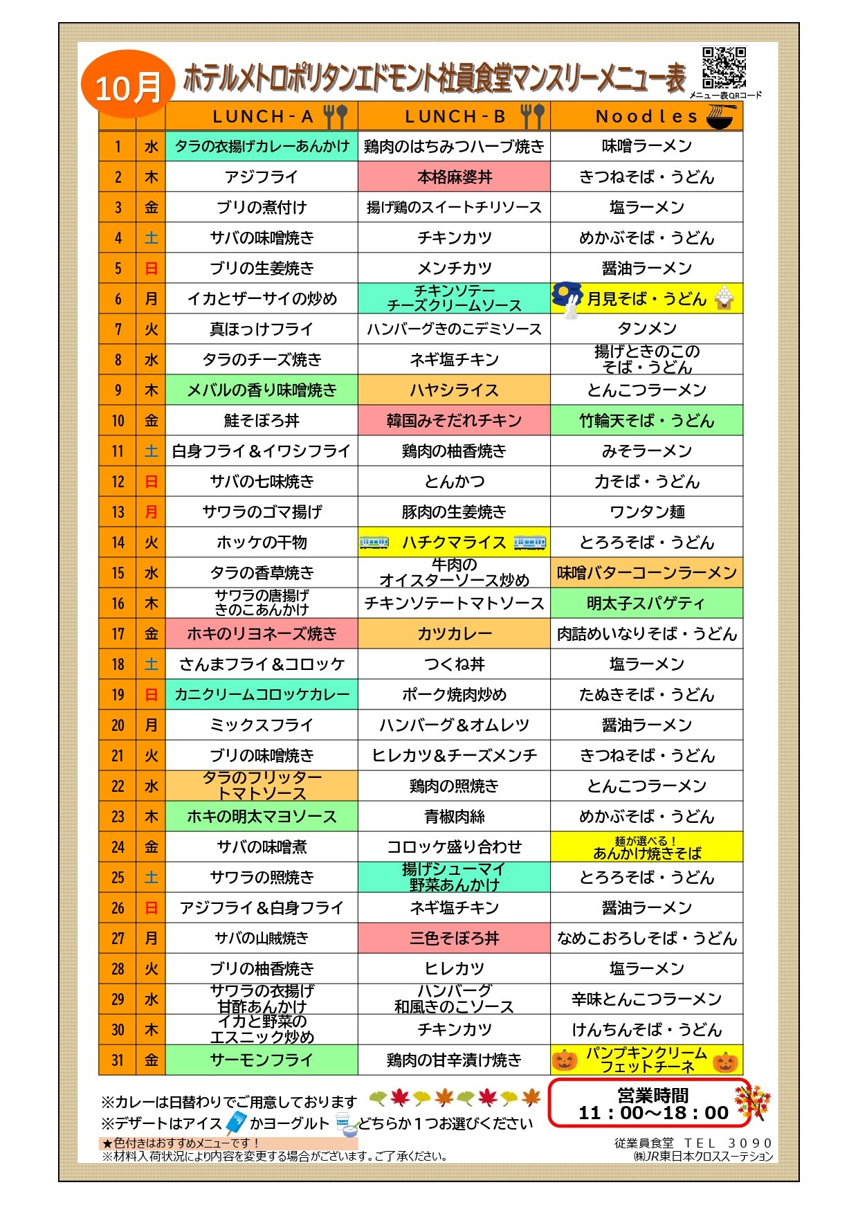 ホテルメトロポリタンエドモント社員食堂~今月の献立~