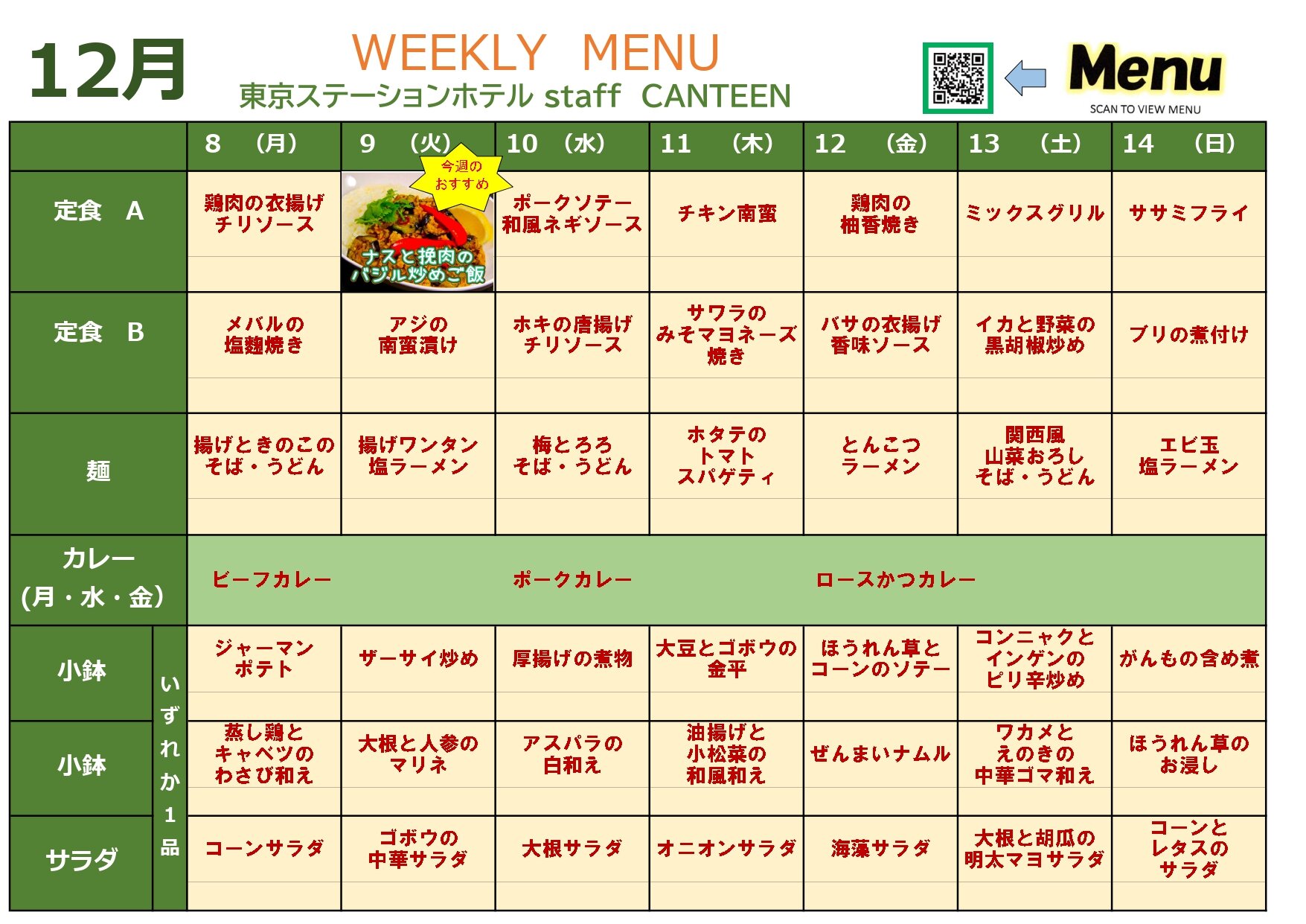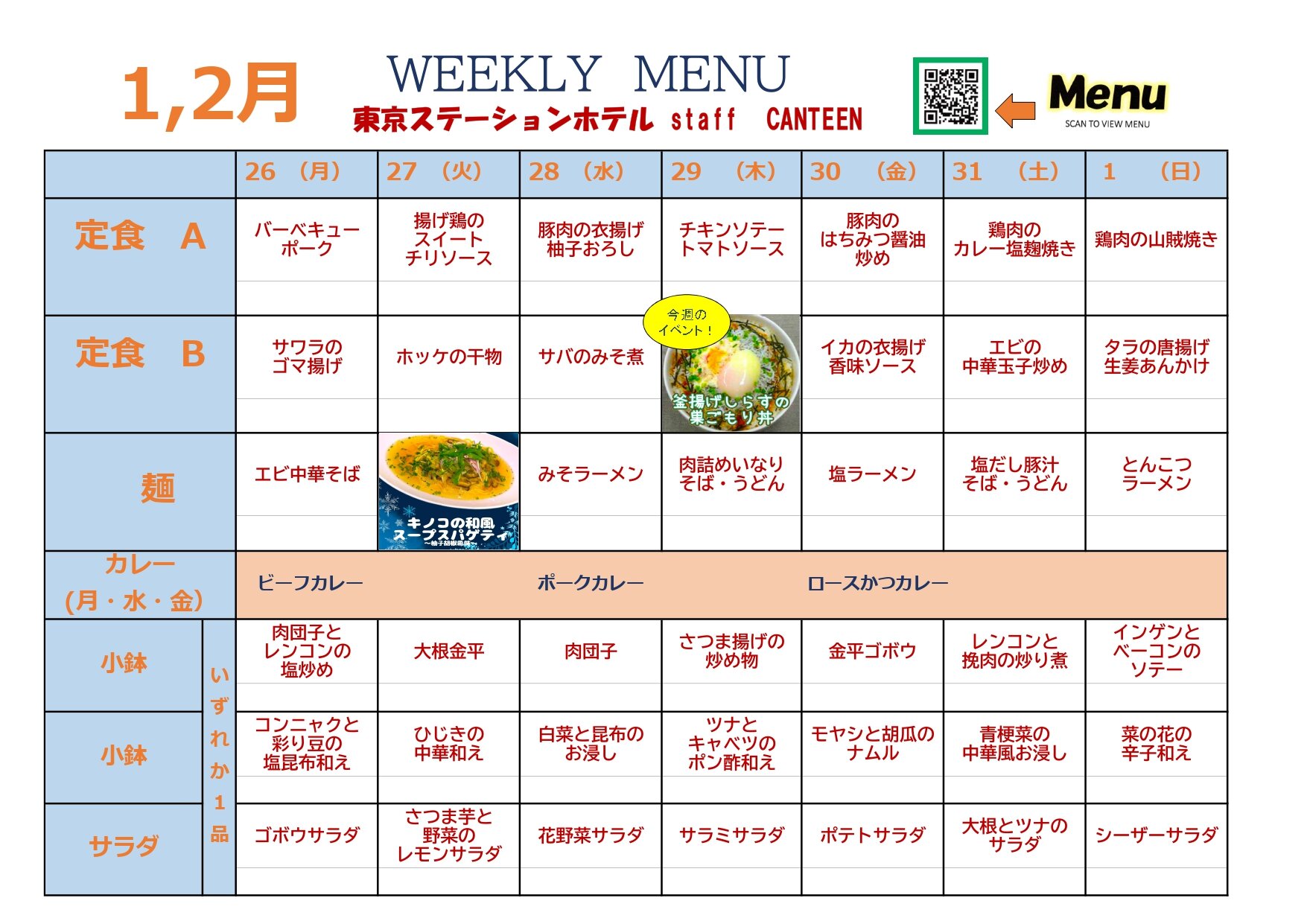 東京ステーションホテル Staff CANTEEN ~今週の献立~